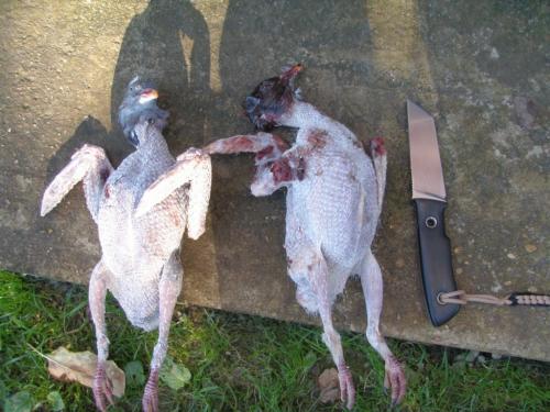 Еще одна особенность – битых голубей надо укладывать в сумку, рюкзак или большие карманы на куртках. Нельзя подвешивать голубей на тороки, так как у них очень легко отрываются головы, поэтому, пробираясь через подсолнухи, кукурузу или кусты, можно остаться с одними голубиными головами.